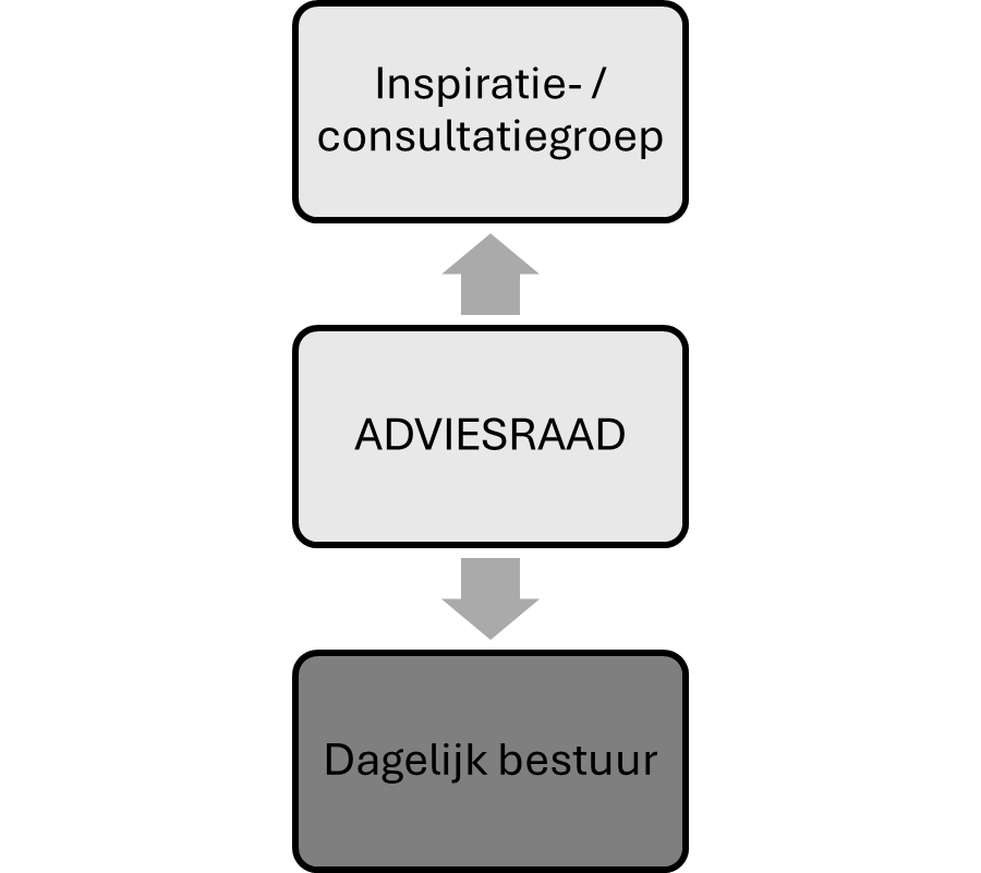 Doel is dat de inspiratie-/ consultatiegroep twee keer per jaar samenkomt. De adviesraad zal tweemaandelijks vergaderen en het dagelijks bestuur zal maandelijks vergaderen.